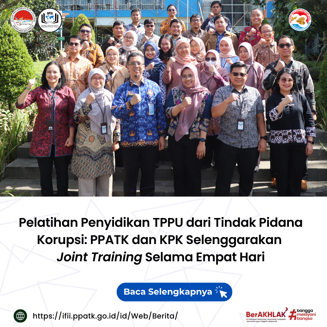 Depok — Pusat Pelaporan dan Analisis Transaksi Keuangan (PPATK) bersama Komisi Pemberantasan Korupsi (KPK) sukses menyelenggarakan Pelatihan Penyidikan TPPU dari TP Korupsi. Sebanyak 25 peserta yang merupakan pegawai dari PPATK dan KPK mengikuti pelatihan gabungan ini. Joint Training antara PP ...