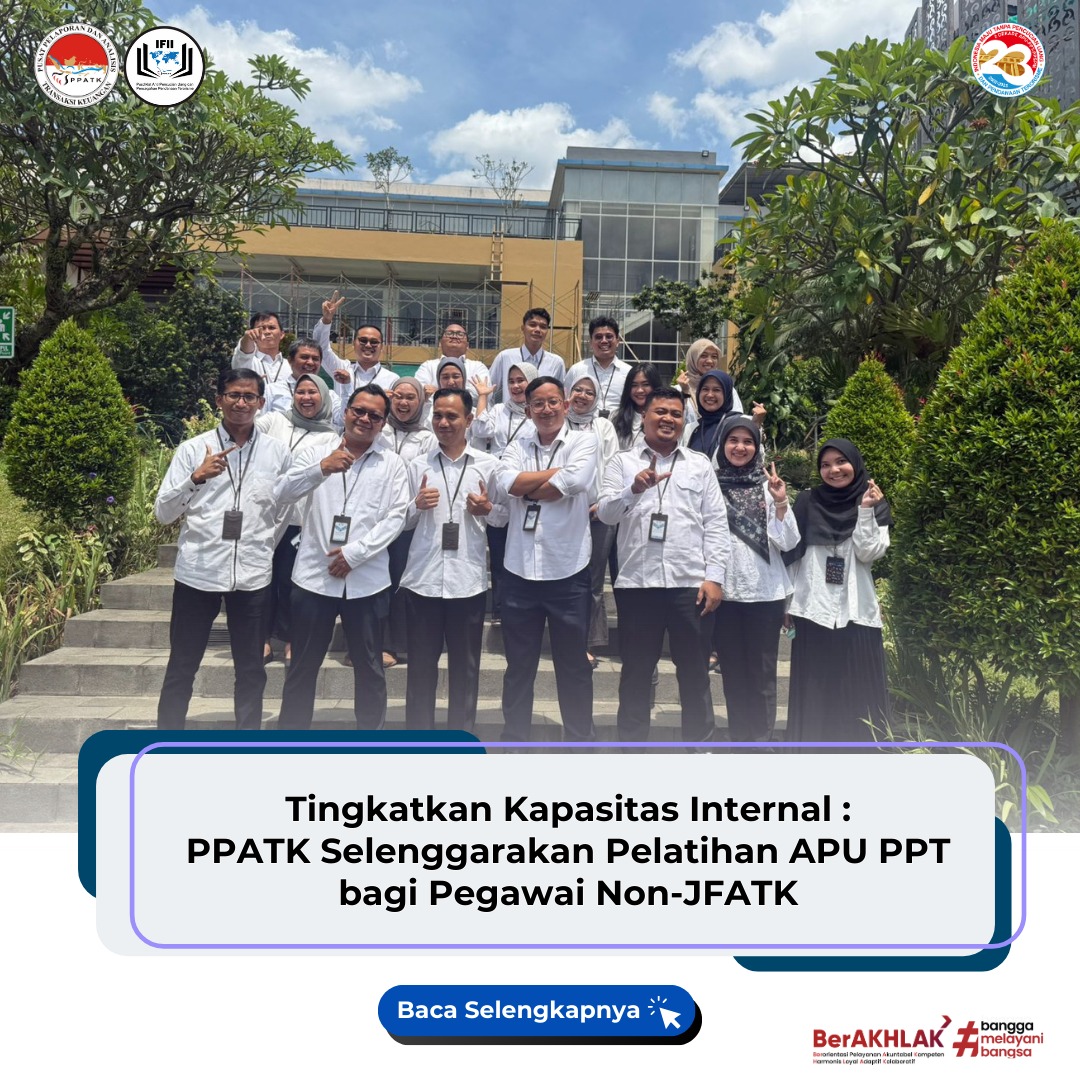 Pusat Pelaporan dan Analisis Transaksi Keuangan (PPATK) menyelenggarakan Pelatihan Pengenalan Anti Pencucian Uang dan Pencegahan Pendanaan Terorisme (APU PPT) bagi pegawai internal non-JFATK pada 24–26 November 2025 di Pusdiklat APUPPT, Depok. Pelatihan ini merupakan upaya penguatan kapasitas ...