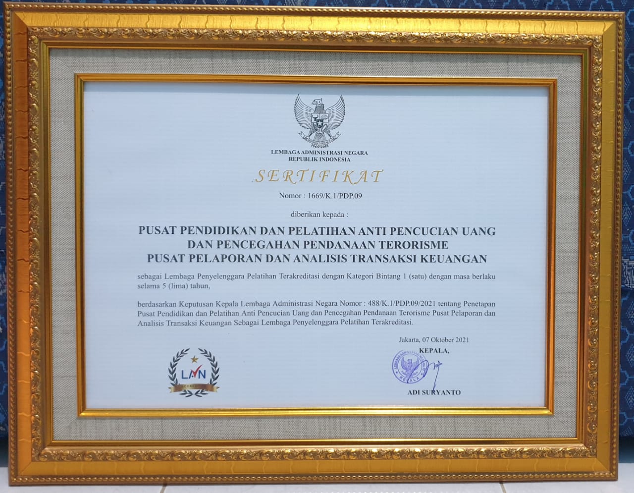 Serah Terima Sertifikat Akreditasi Lembaga Penyelenggara Pelatihan